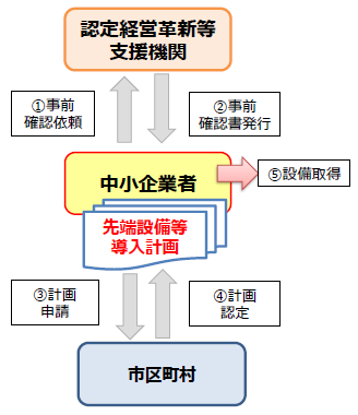 - 先端設備等導入計画の認定申請の前に、認定経営革新等支援機関の事前確認を受けてください。