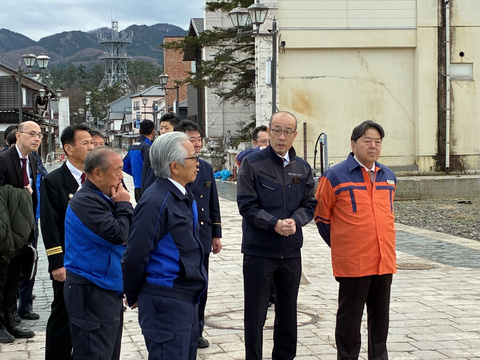 林総務大臣が被災地視察として輪島市を訪れました。市長は輪島消防署にて林総務大臣と面会した後、朝市通りへも同行し、被災地の状況や現状について説明を行いました。