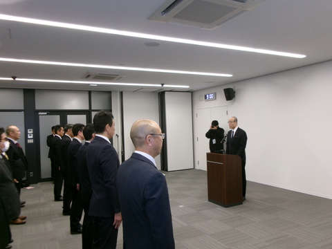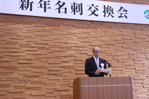 市役所の仕事始め式が開催されました。集まった市役所の部課長級の職員に向けて新年のあいさつを行いました。