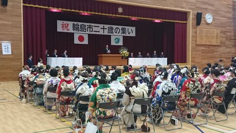 輪島市二十歳の集いが輪島中学校で開催され、今年度二十歳を迎える対象者のうち133人が参加しました。今年度のテーマは「紡成未来~伝統と希望を紡ぐ~」となっており、市長も式辞を述べ、新たな門出を迎えた若者たちを祝福しました。
